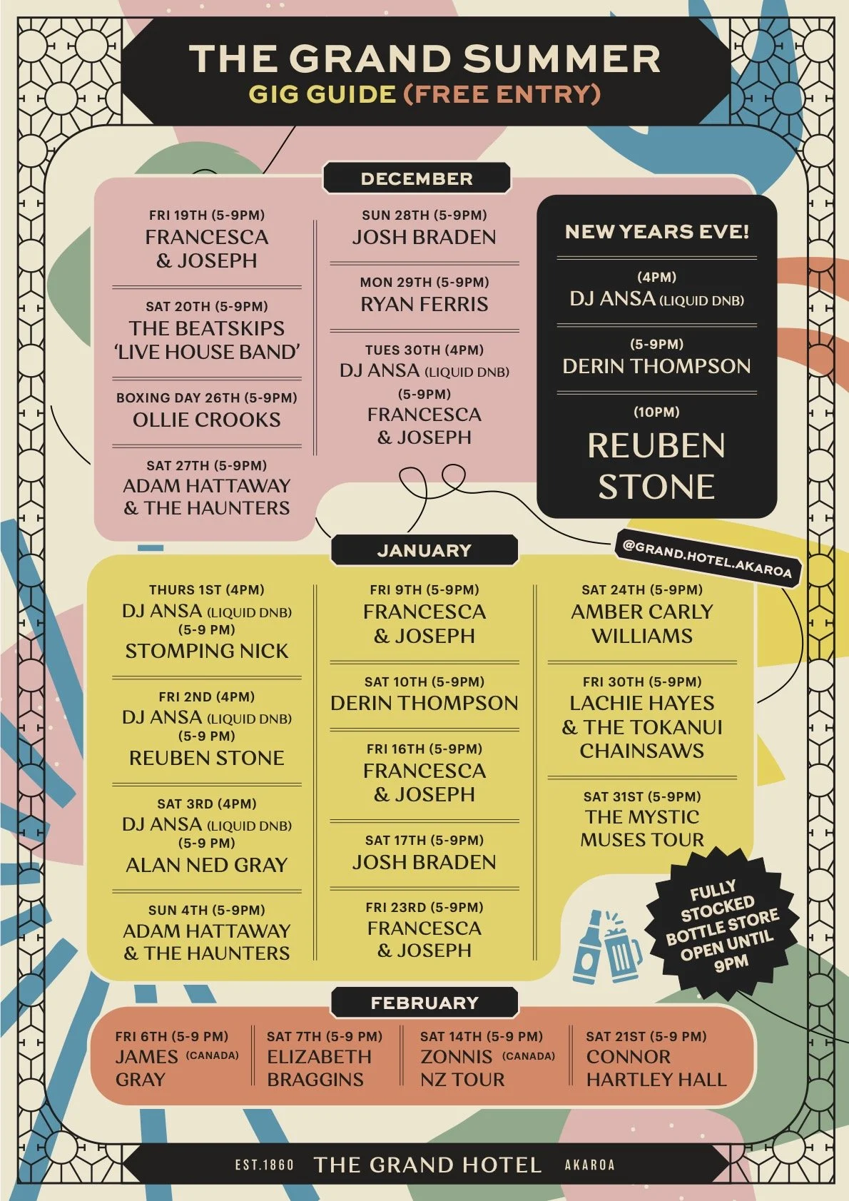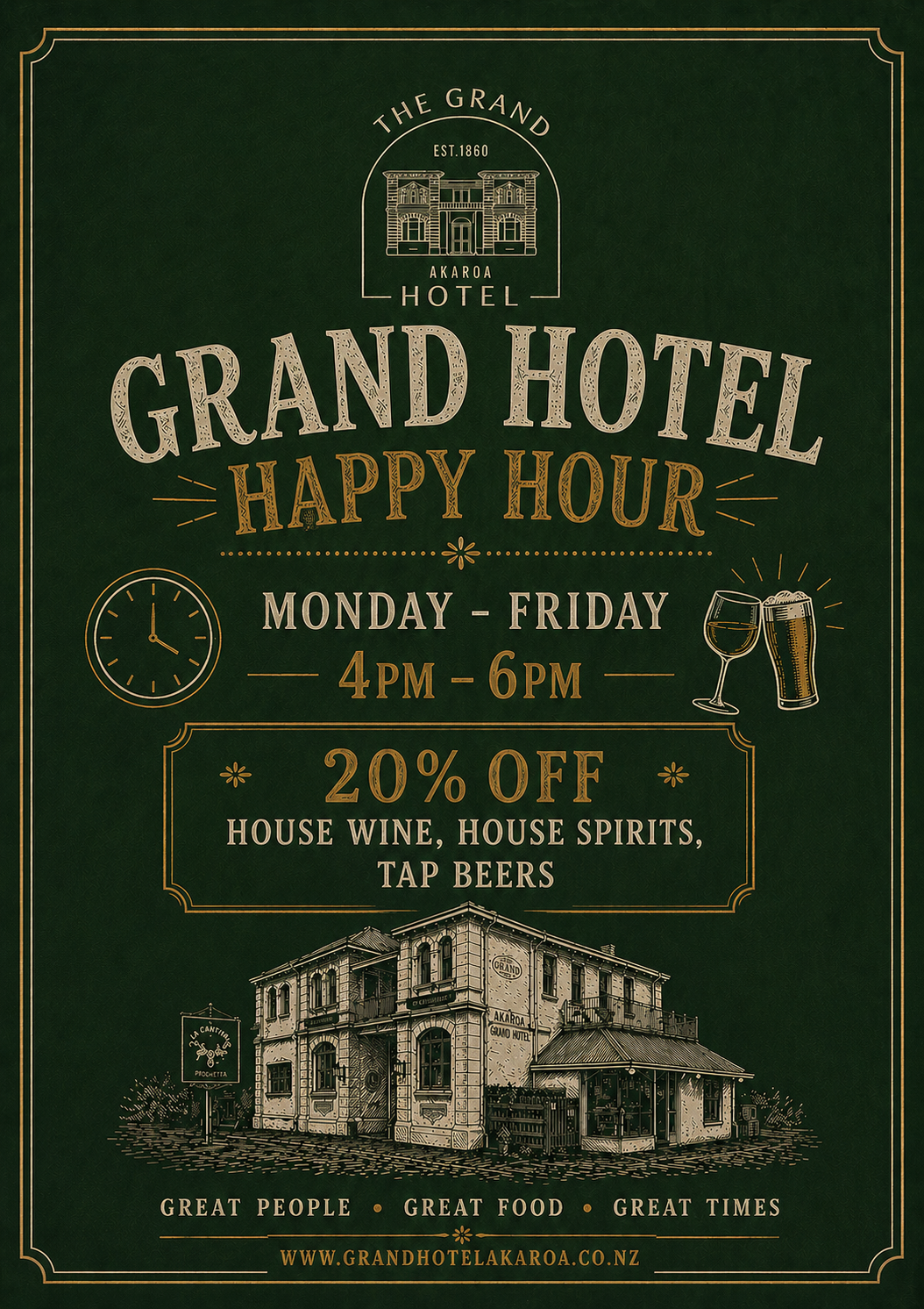 Just an hour’s drive from Christchurch the historic Grand Hotel in Akaroa is the perfect place to stay, eat, drink and relax. With live music, great food and an extensive drinks list The Grand Hotel has something for everyone. Families and dogs are not only welcome but encouraged and there is lots of space to sit outside and soak up the sun.